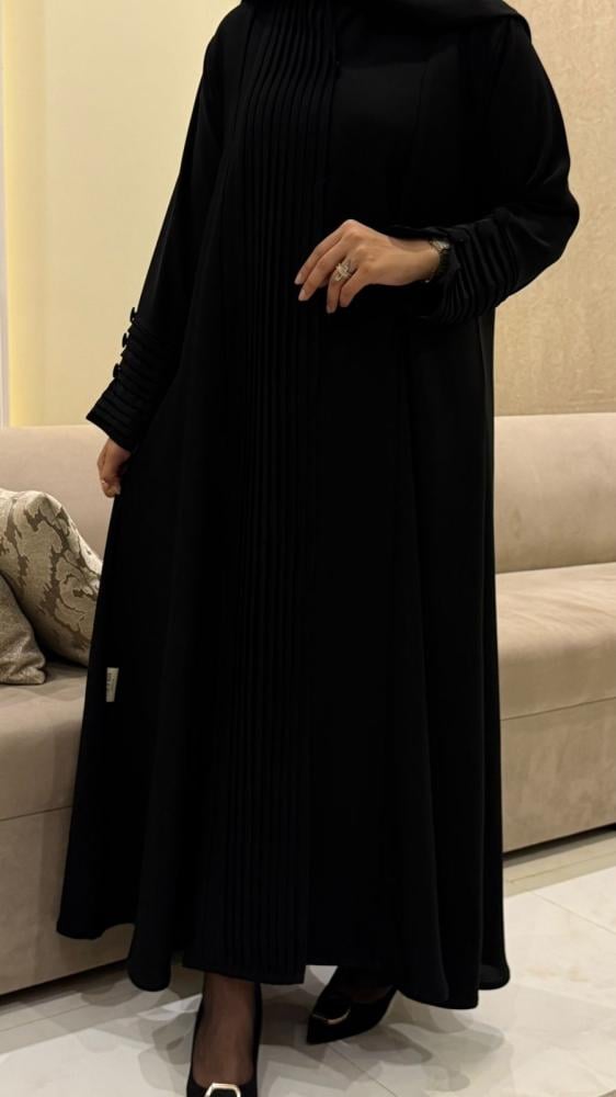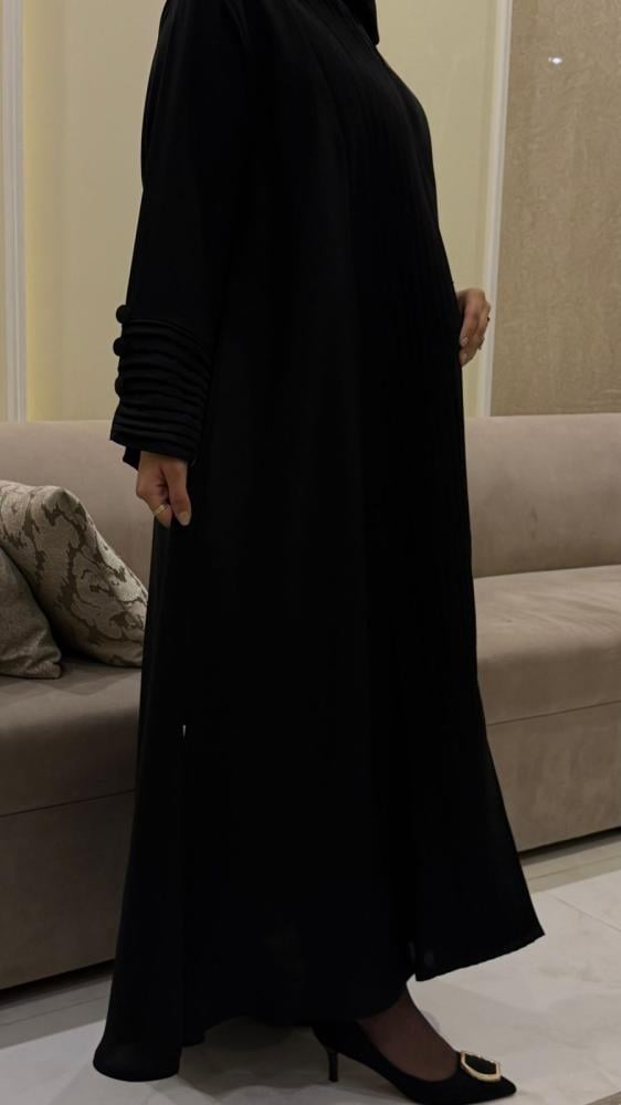 القماش :كريب انترنت كوري سواد فاحم انيق نسيج ناعم و انسيابي مريح.
